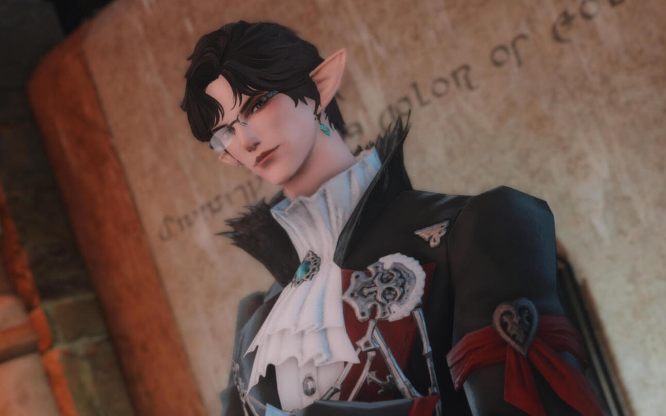 At 6 fulms and 3 ilms, Leonnaux is on the shorter side for an Elezen. In terms of build, he’s a lithe, willowy man who finds it easy to pass in a number of different roles and presentations. Although he defaults to presenting himself as masculine, he is just as comfortable with androgynous or even feminine presentations (and terms of address).Leonnaux intentionally dresses himself in such a way as to cut a distinctive silhouette, accentuating hard lines and sharp angles. The core of his wardrobe is comprised of simple items—button-down shirts, vests, suit jackets, and slacks, mostly in dark or neutral colors—and complemented with bright or patterned accent pieces and jewelry. While he is not incapable of dressing down when the situation calls for it, he will generally strive to look his best on any social occasion.